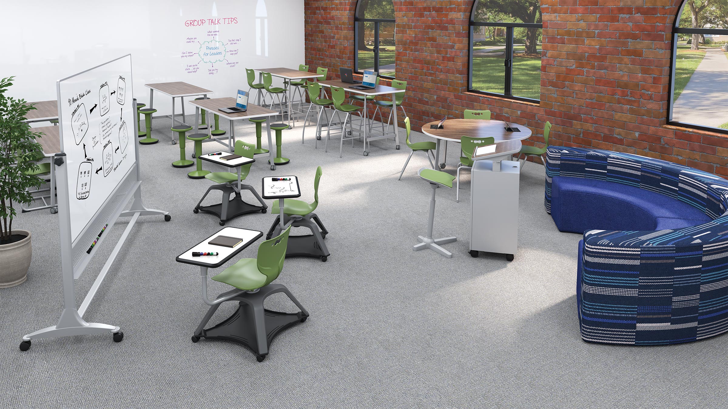 Students change, so our furniture does too. Designed for growth, mobility, and ease of use for all ages. Furniture and boards are accessible and colorful.
